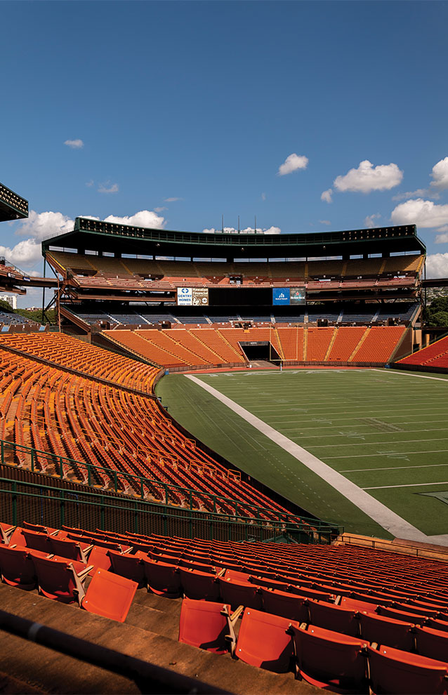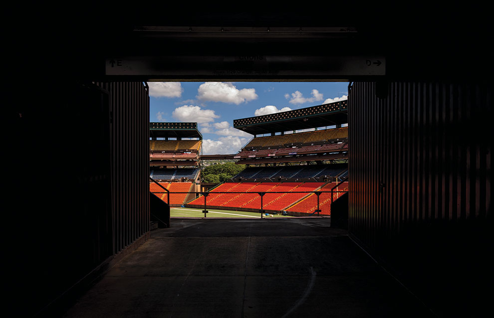 Even if you aren't a sports fan living in Hawaii, you probably have a memory of Aloha Stadium. A friend remembers skydivers parachuting in to tell kids not to do drugs during a statewide DARE day. Another remembers vomit raining down from the upper deck at a Bruno Mars concert. Another can still smell the hot dogs as she worked the concession stand for a high school fundraiser. I remember the tailgate parties with smoke meat, laulau, opihi (limpets) on the grill and apple banana moonshine. You didn't even have to be at the stadium to feel its presence-when I worked at a restaurant in 2006, during the Colt Brennan era, we knew that we might as well close for dinner on game nights, it was so slow. In those years almost fifty thousand people-about 20 percent of Honolulu's population-would be in the stadium on Saturday nights, the greatest concentration of people in the state over a three-hour span.